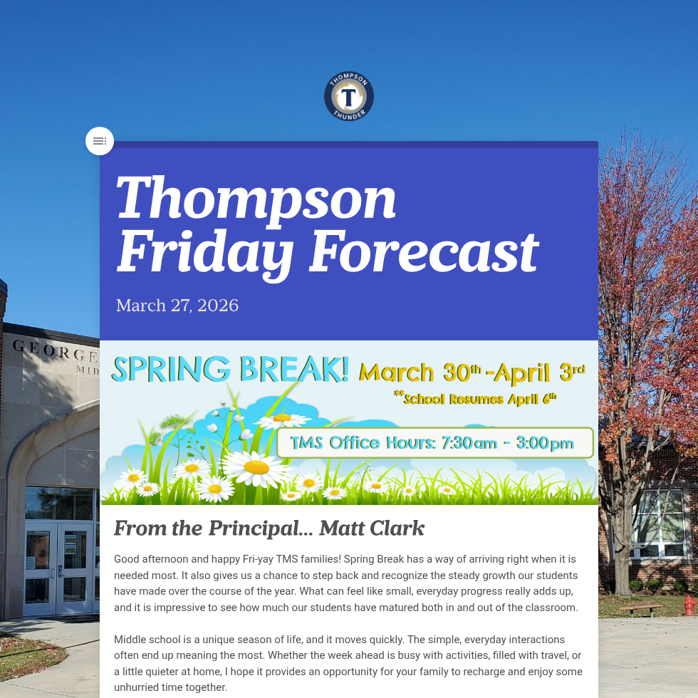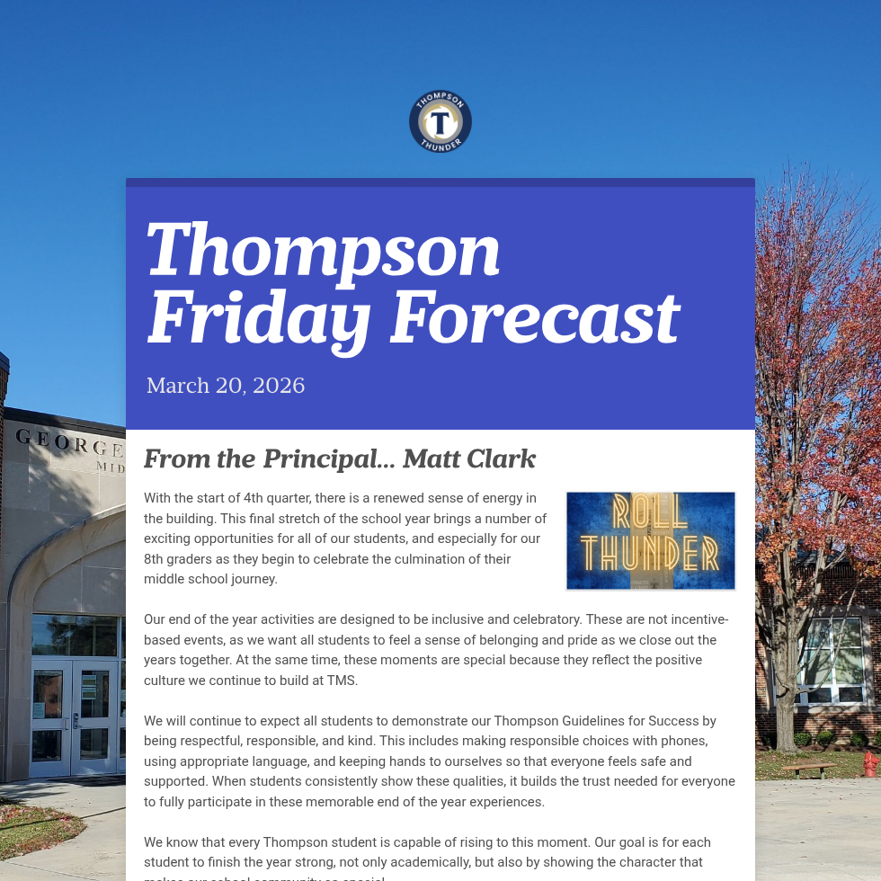Thompson Friday Forecast is sent via Finalsite